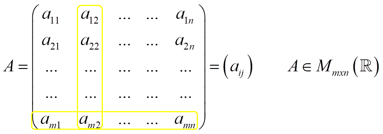 Una matriz de m filas y n columnas (mxn) es una tabla ordenada de números de la forma: